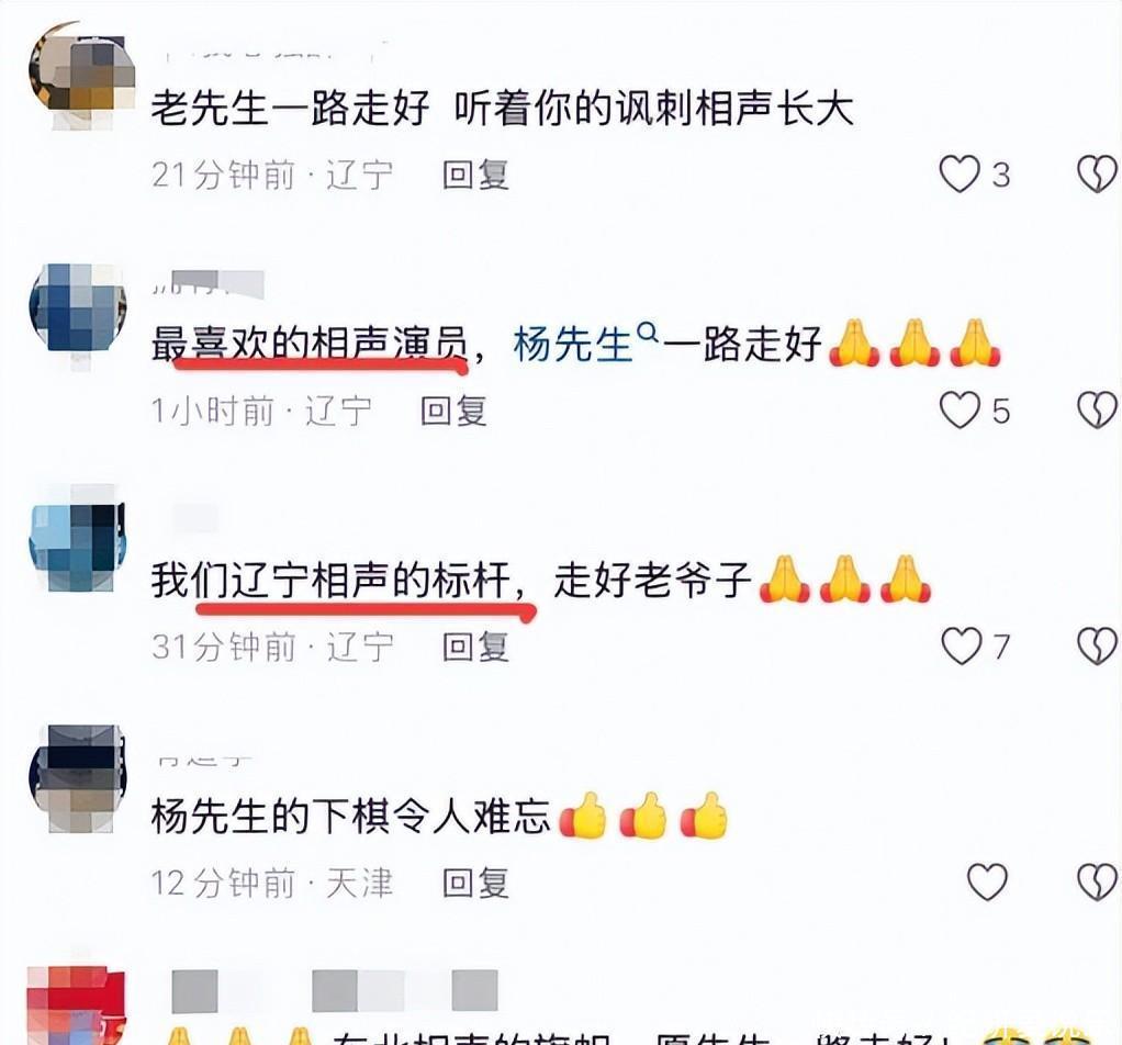 可谁能想到,老爷子刚走不到一天,评论区就冒出一堆卖假货的广告,蹭着哀悼的热度吆喝生意。连官方媒体底下都敢这么干,真是吃相难看。大家正难过呢,突然刷到这种内容,火气一下就上来了——这不是消费逝者是什么? 如今相声圈青黄不接,老一辈一个接一个离开,年轻人还没扛起大旗。杨振华这一走,沈阳相声等于塌了半边天。他留下的不只是段子,更是一种对舞台的敬畏和对观众的真心。希望他那些徒弟真能争口气,别让老爷子白忙活一辈子。